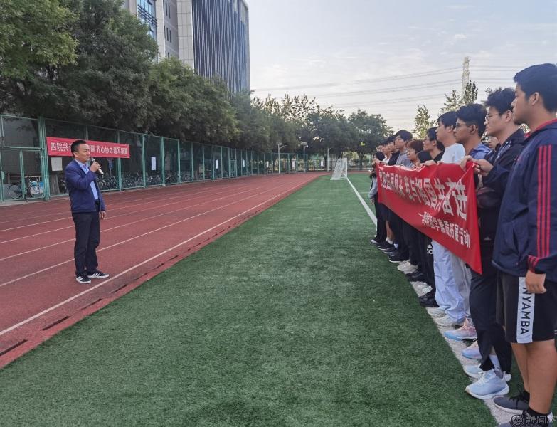 为丰富留校学生中秋、国秋假期生活,理学院于9月29日上午在学校大操场开展“喜迎国庆展风采,我与祖国共奋进”素质拓展活动。学院党委副书记贺映勇、团委书记夏丹梅及23级留校新生参加了本次活动。