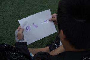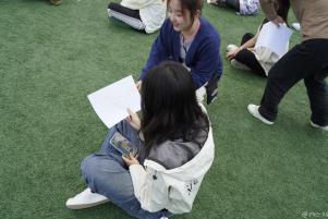 第二个游戏“国与家撞个满怀”。参加同学围绕“国庆节,中秋节”为主题布置绘画内容,可以画心中中秋节的“家”、也可以画祖国的壮丽山河等,同学们深刻地感受到家国情怀的交融,为祖国的繁荣富强而自豪,为家庭的幸福和睦而感恩。