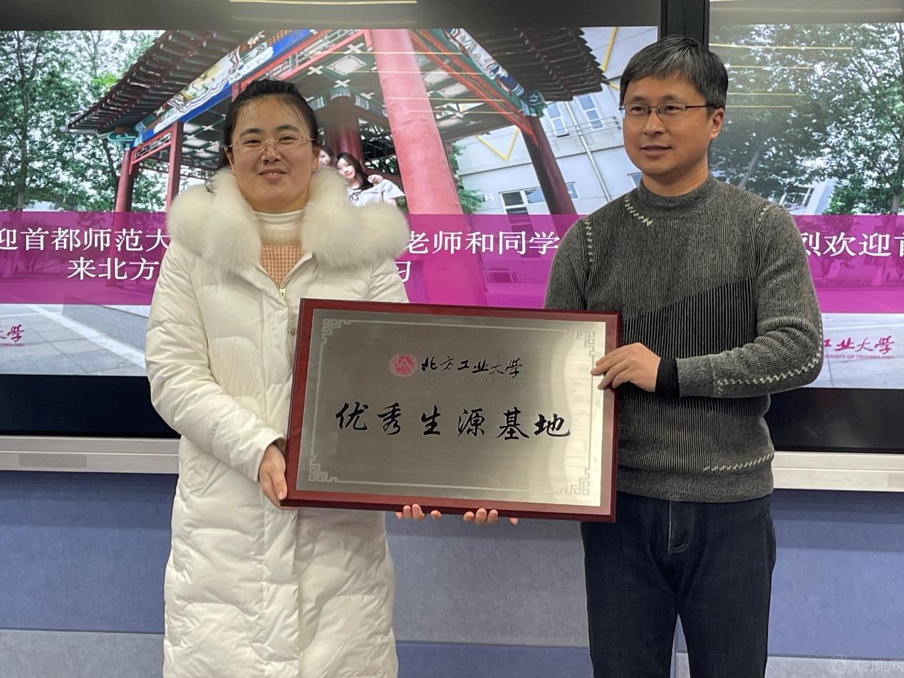 参观结束后,举行了优秀生源基地授牌仪式。招生就业处副处长王宏波代表学校授予首都师范大学附属丽泽中学为“Beat365唯一官方网站优质生源基地”牌匾。
