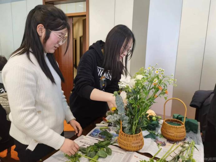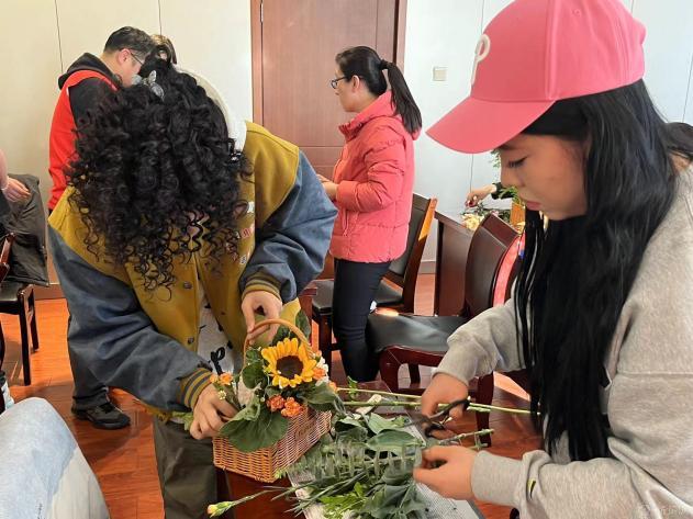 3月7日,服务中心开展了以“绽放如花”为主题的艺术插花公益劳动课,选中课程的同学,在国教中心301会议室,学习花卉知识和插花技能,亲手用自己的插花作品装点生活环境。