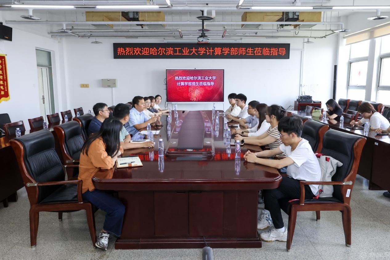 在瀚学楼1014会议室与信息学院师生代表深入交流座谈。哈尔滨工业大学计算学部副书记李柱石,介绍了哈尔滨工业大学坚持“政治引领、典型引路、品牌带动、校训育人”的党建和思想政治工作传统,构建了“学校党委主导、学院党委主体、党支部主心骨、党员主人翁”的基层党建工作体系,形成了“+支部”到“支部+”经验优势,具体分享了在“金牌讲师”、“希望之舟”等工作案例,并就有关问题和困惑进行交流。王伟宾介绍了信息学院始终坚持“全员育人,全方位育人,全过程育人”的教育理念,积极为学生营造良好的学习氛围和学习环境,注重学生良好学习习惯和优良学风的培养,通过预备党员“五个一工程”、正式党员“承诺践诺”等举措,加强学生党员教育培养,并分享了全国样板党支部、纽扣课堂等典型案例的建设经验。双方重点围绕党建和人才培养等方面开展了深入交流,一致认为双方要进一步加强沟通,充分发挥各自资源优势,互相学习借鉴,积极合作,共同进步,服务区域高质量发展,共同在工业报国的征程中谱写绚丽篇章。