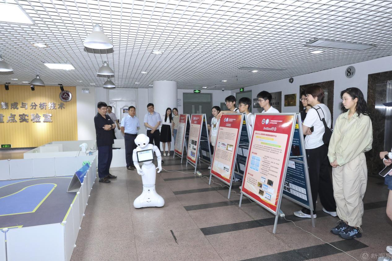 参观结束后,来访团师生走进信息学院人工智能实验室,与实验室负责人赵卓峰教授深入交流了智能机器人的发展历程和前沿技术动态,赵老师向来访团详细介绍了科研团队最新研发机器人的技术特点和应用场景,并现场演示了机器狗的动态平衡、自主避障等功能,以及具身机器人的语音交互、面部识别等功能。