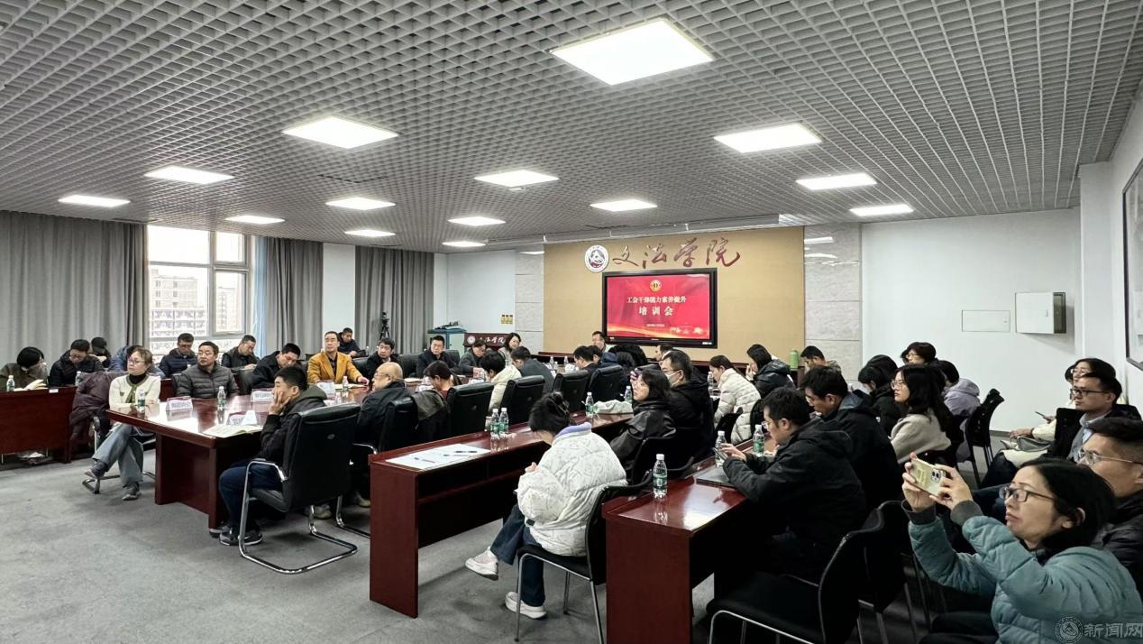 11月25日上午,学校工会干部能力素养提升培训会在翰学楼710文法学院学术报告厅举行。培训采取“线上+线下”相结合的方式进行,各分工会主席、委员、工会小组长及文体协会负责人和教代会工代会代表100余名工会干部参加了培训。培训会由工会常务副主席黄睿主持。