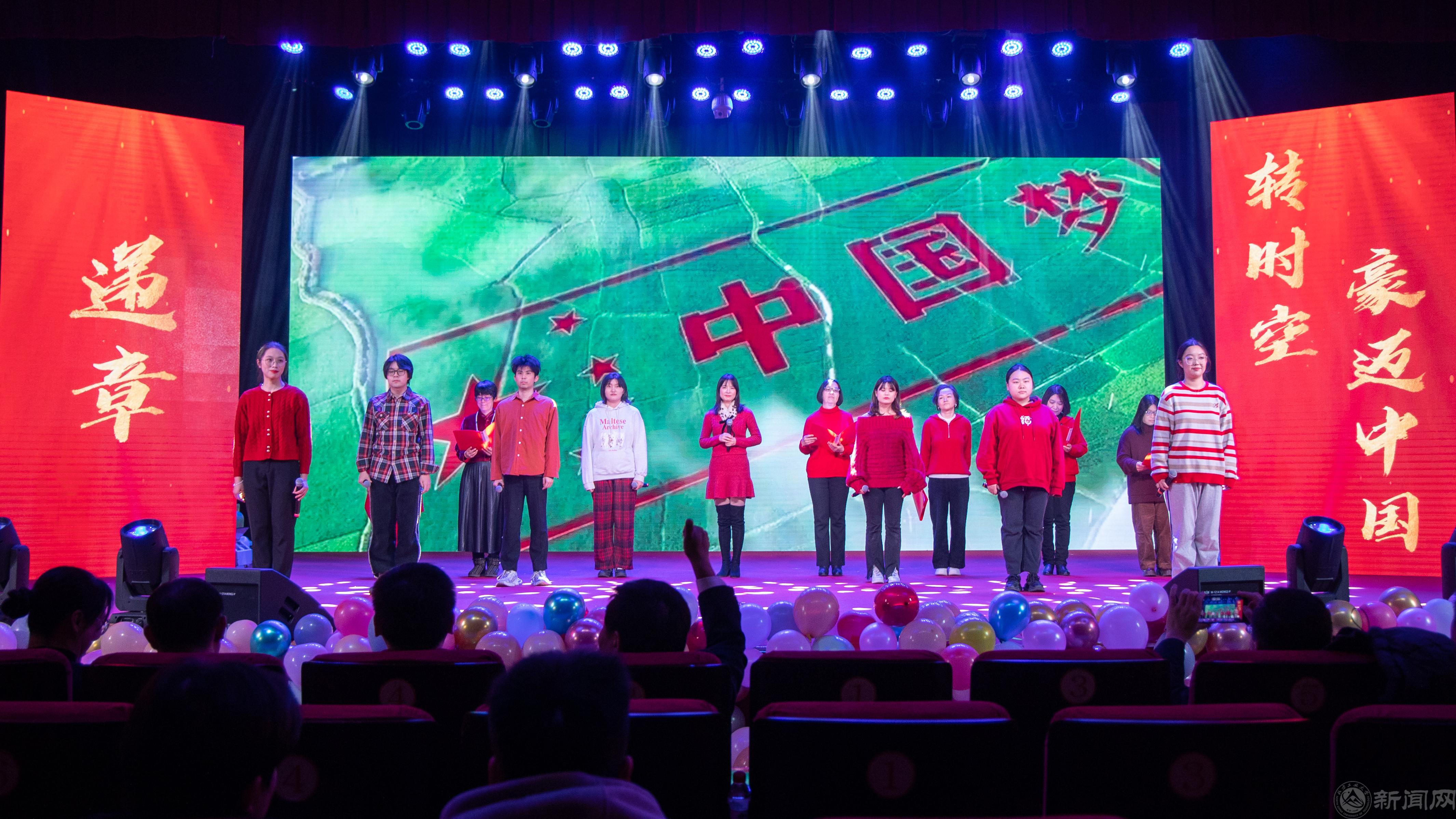 在递章“转时空∙豪迈中国”中,英语系教师带来了双语朗诵《沁园春∙雪》,校大学生艺术团合唱分团的同学们演唱了《各族人民歌唱毛主席》,日语系师生带来了歌曲《如愿》,深情地向以毛泽东同志为代表的革命先辈们表达崇高敬意与缅怀。