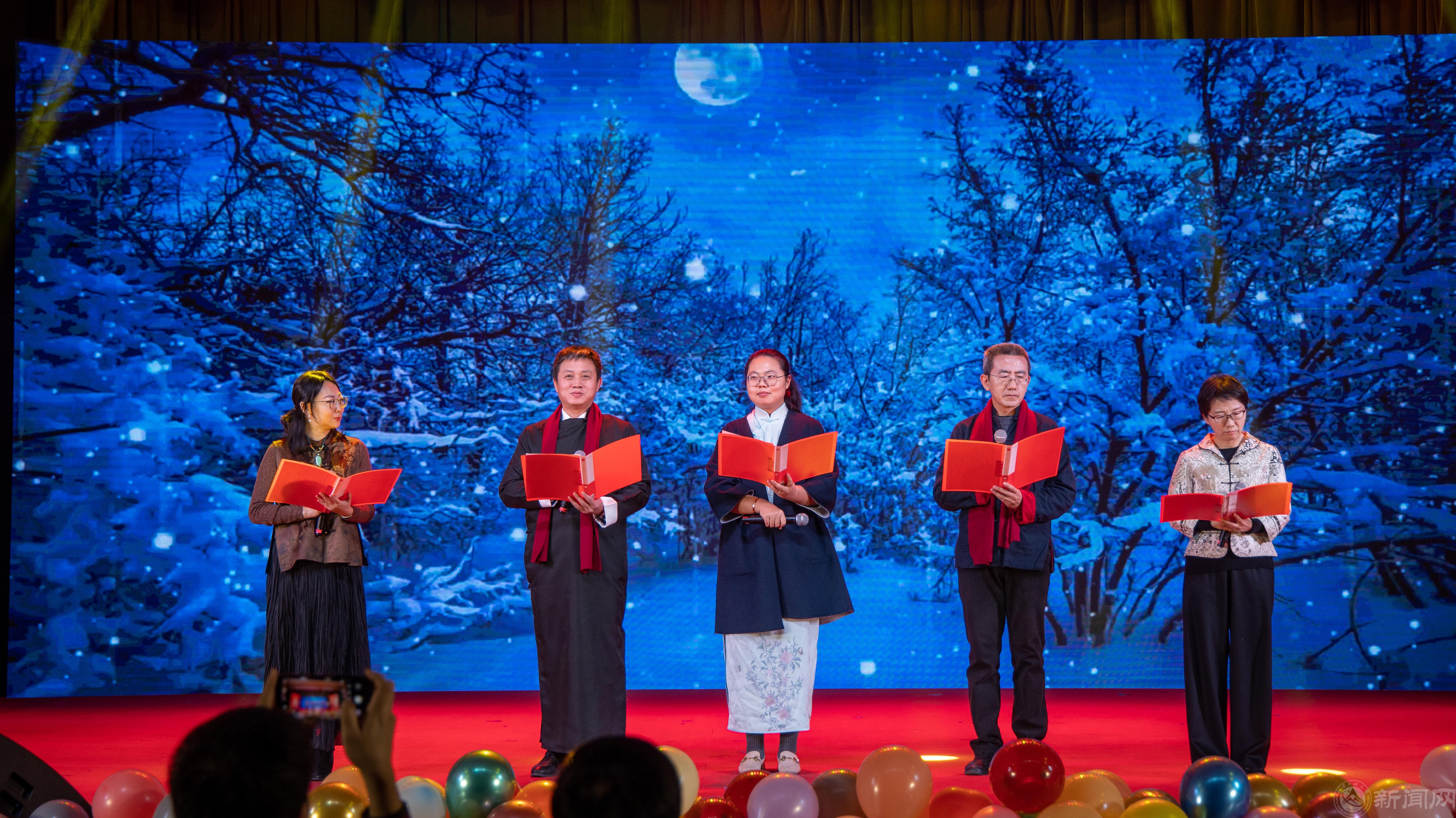 为庆祝新中国成立75周年,深入落实党的二十届三中全会精神和《教育强国建设规划纲要(2024—2035年)》,进一步激励全院教师以教育家精神凝心铸魂,鼓励青年学生砥砺奋进,12月25日晚,文法学院在图书信息楼报告厅举办了年度先进表彰暨2025“青春焕新年”师生联欢晚会。