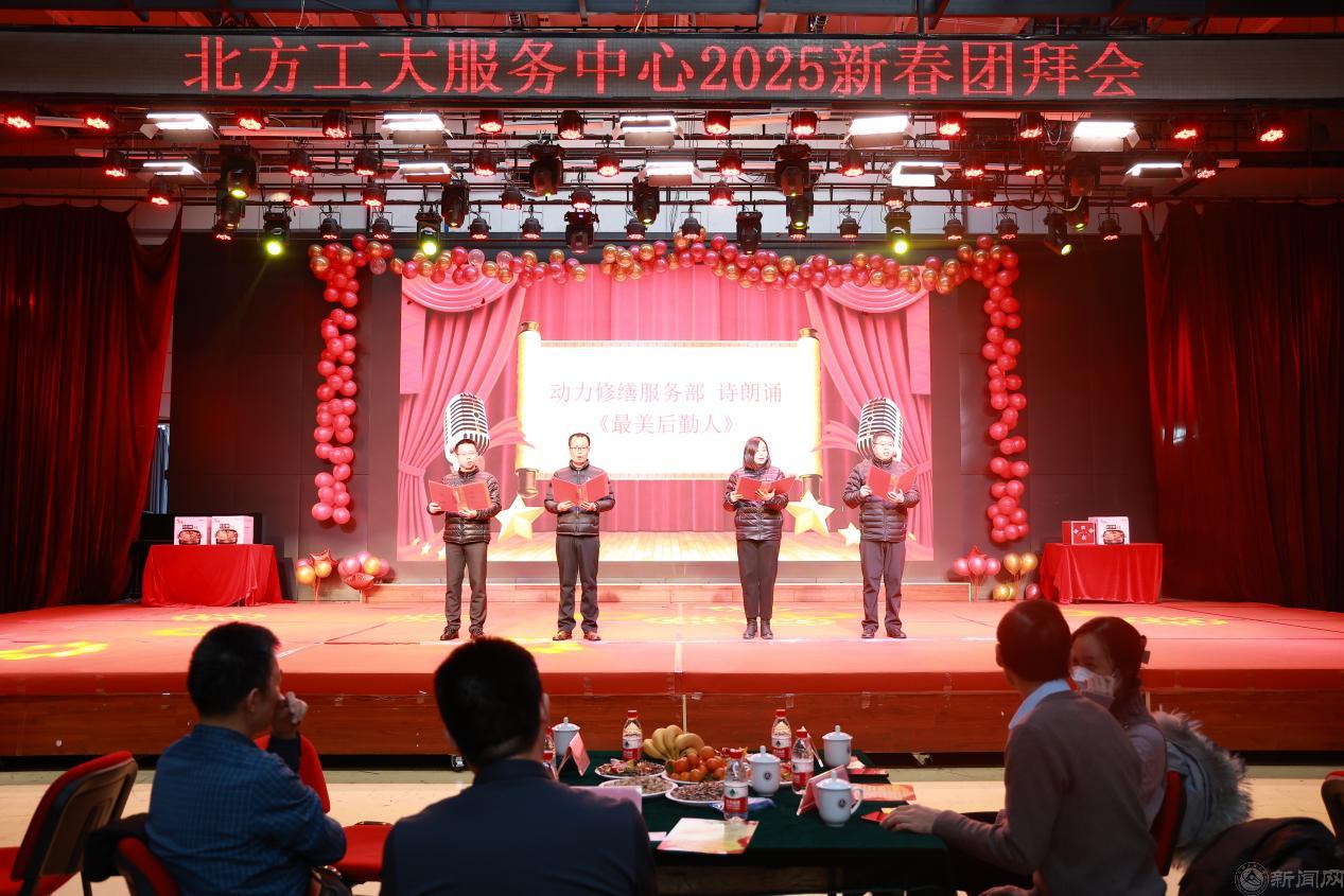 祥龙摆尾辞旧岁,金蛇纳福启新程。1月10日,服务中心在学生服务楼多功能厅举办2025年“同心共筑梦·聚力启新程”新春团拜会。宴会现场张灯结彩、喜气洋洋,服务中心200余位职工欢聚一堂,共迎新春。学校后勤基建处、资产处、财务处、审计处、安稳部、原服务中心领导、北京北方科工、北京高校后勤服务有限责任公司领导班子成员等出席活动。