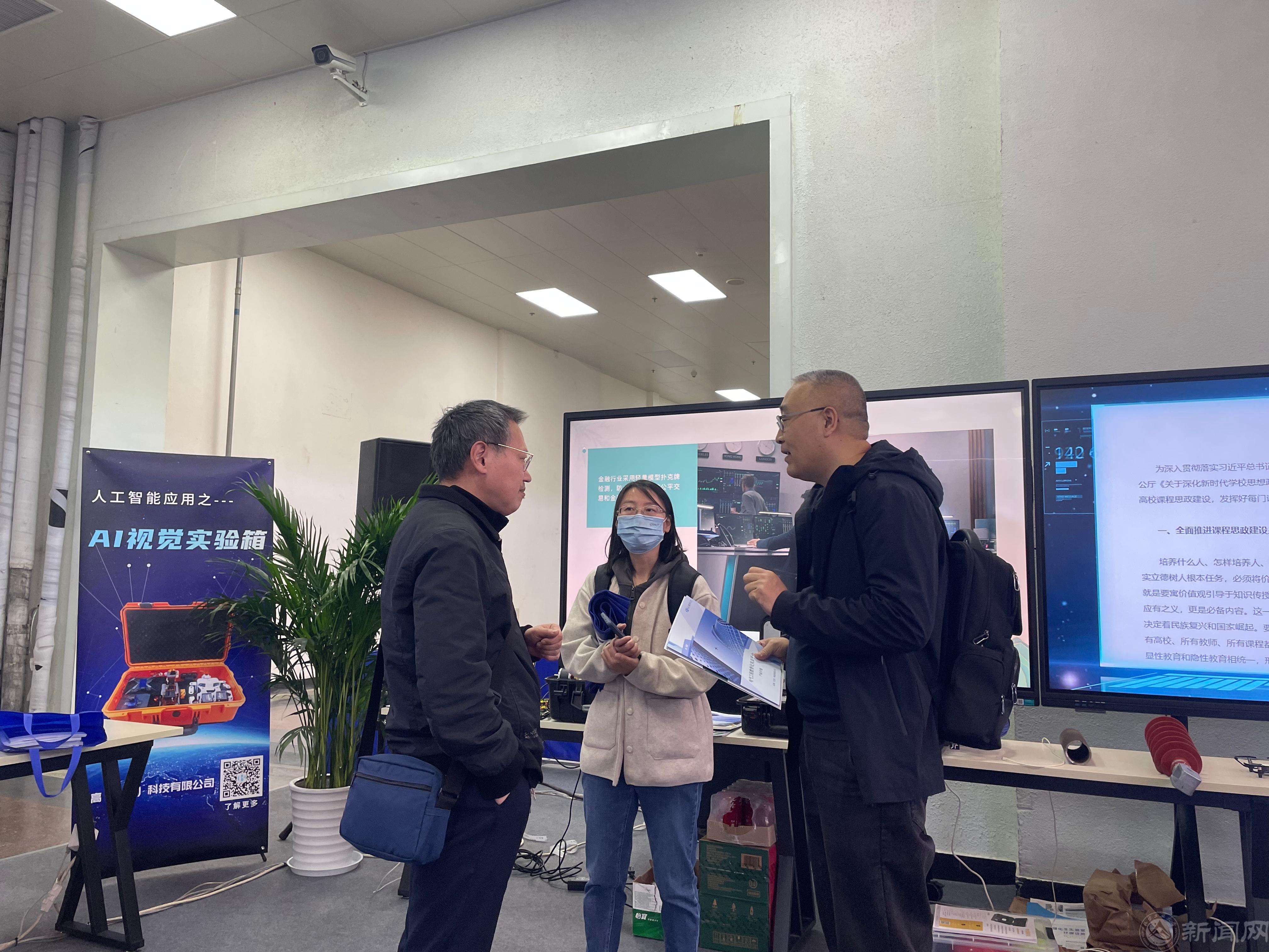 电气与控制工程学院孟庆海教授、郭威老师,储能学院王磊老师向参展人员展示了他们自主研发的创新教学装备。孟庆海老师展示了便携电机教具箱,介绍了其在电气工程相关专业教学中的应用场景。郭威和王磊老师重点介绍了他们在讲解《人工智能通识课》期间研发的“AI视觉探索者工具箱”,结合学生一学期的学习实际与问题反馈,工具箱集成了多种有利于学生学习机器视觉技术的工具。这些装备吸引了大量观展者驻足交流,展示了Beat365教师潜心实践教学,改进实验装置的探索钻研精神。