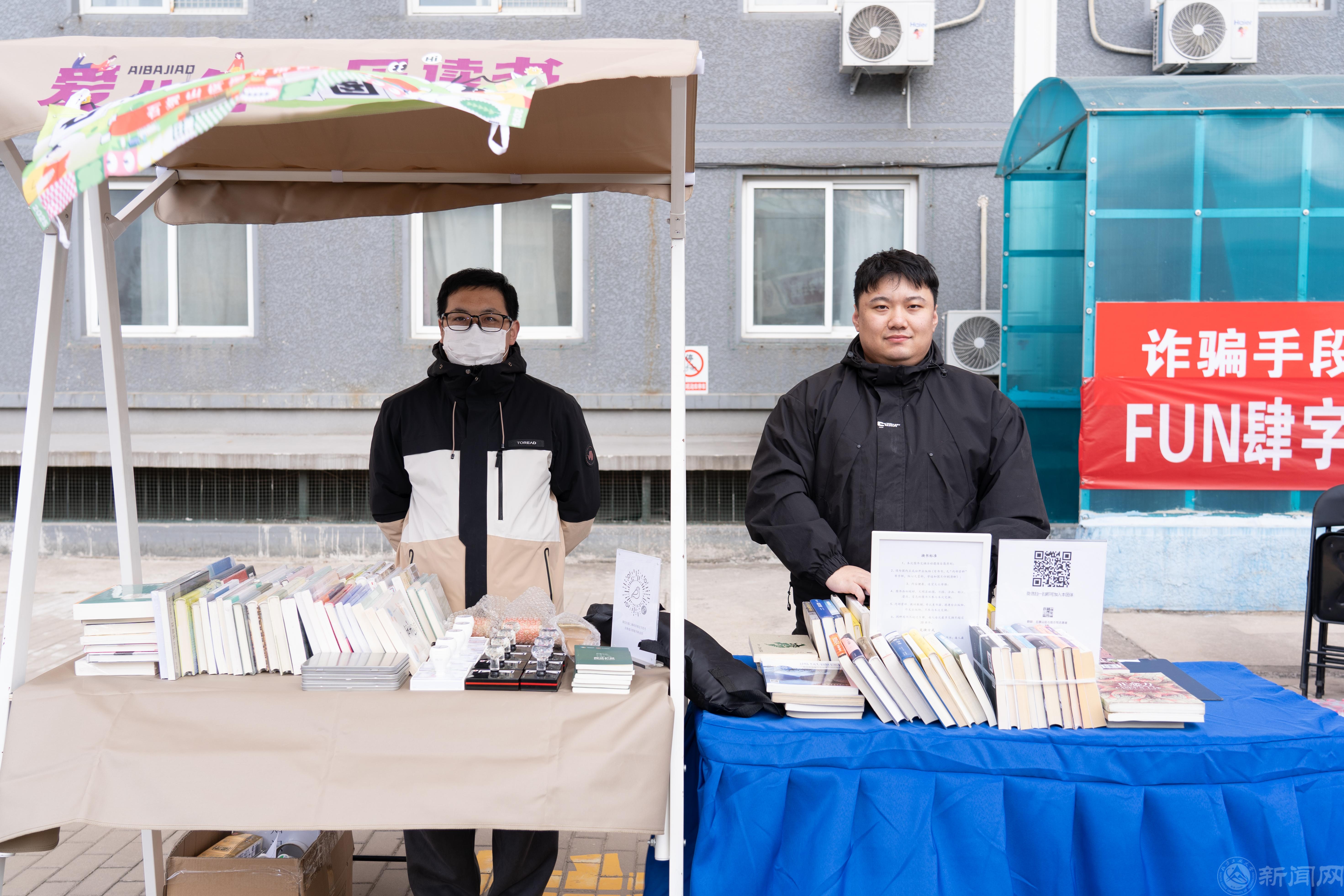 近日,校团委、研工部联合八角街道办事处、石景山区图书馆在金鼎园大学生公寓成功举办“FUN肆自由”书香游园会暨图书市集活动。本次活动以“非遗传承·文娱共享”为主题,通过图书展销、文化体验与非遗手作等多元形式,搭建起传统文化与青年群体的互动桥梁,吸引了近千名师生热情参与。