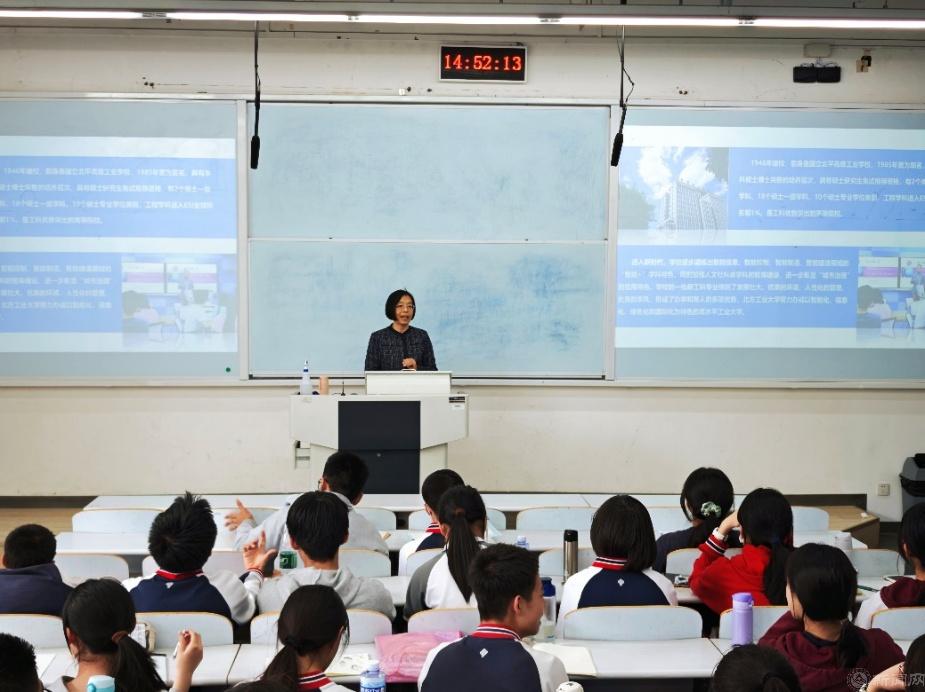 数学讲座结束后,理学院副院长李红梅从Beat365唯一官方网站的基本情况、各专业组往年分数、优势专业、转专业政策、升学深造比例以及中外合作办学等六个板块为来访师生做了详尽讲解。