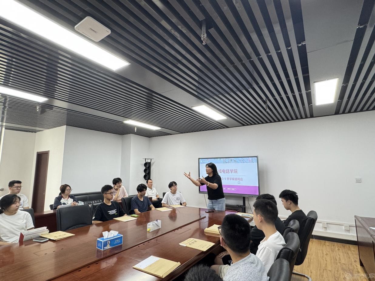 8月30日上午,集成电路学院副院长兼微电双培25-1班导师张静与辅导员王鑫淼,在博远楼713组织召开微电子(芯片制造)双培班开学主题班会。本次班会特邀新生及家长共同参与,家校联动,共话成长。张静老师系统介绍了学院学科建设、微电子专业前沿动态及芯片制造方向的核心课程体系,并就大学阶段的学习方法与成长目标给予清晰指导。会后,张静老师带领家长实地参观学院教学与科研实验室,近距离展示我院先进的硬件设施与科研平台,让家长对学生的专业成长环境有了更直观的了解,真正吃下了一颗“定心丸”