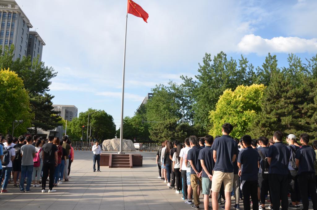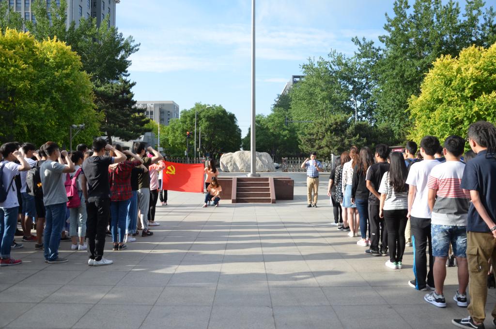 仪式由学院党委副书记杨朋主持,全体师生面向国旗,庄严站立,国旗迎着朝阳冉冉升起。之后,团总支书记李伟带领同学们在国旗下重温了入党誓词,敦品楼前回荡着大家“我志愿加入中国共产党……”的声音。