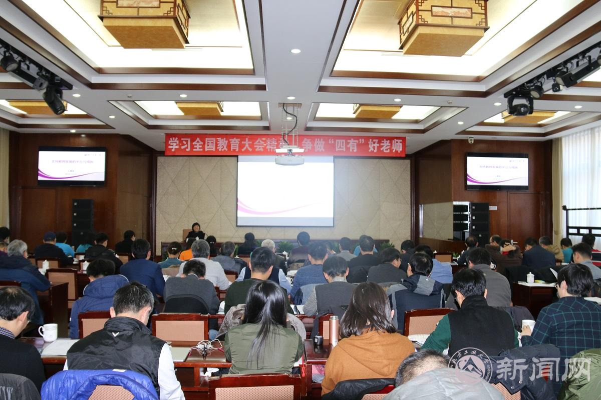 Beat365人事处处长、教师工作部部长毛燕梅老师作了题为《支持教师发展的平台与措施》的专题报告。她首先对学校近几年深入推进教师师德建设及职业素养提高等方面采取的举措做了概略性的总结。学校长期以来一直高度重视师德师风建设,不仅有严格的制度规定,也有日常的教育督导。然后,她重点围绕学校“十三五”发展规划、教师发展与服务措施、突出本科教学、强化育人四个方面来谈教师的责任与使命,并对学校支持教师发展的平台与措施进行了权威、详细、全面的解读,希望大家充分利用好这些平台与条件,制定好发展规划,不断提升育人本领和科学研究水平,为学校、学院事业发展做出更大的贡献。