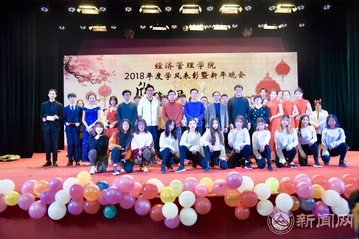 12月18日晚,经济管理学院在图书馆报告厅举办“欣禧伊始 荟萃经管”2018年度学风表彰暨新年晚会。学生工作部部长高国伟、校团委书记何有华、学生工作部副部长赵帅、经济管理学院全体领导班子成员、各系主任、班导师、辅导员及600余名同学共同参加了本次晚会。