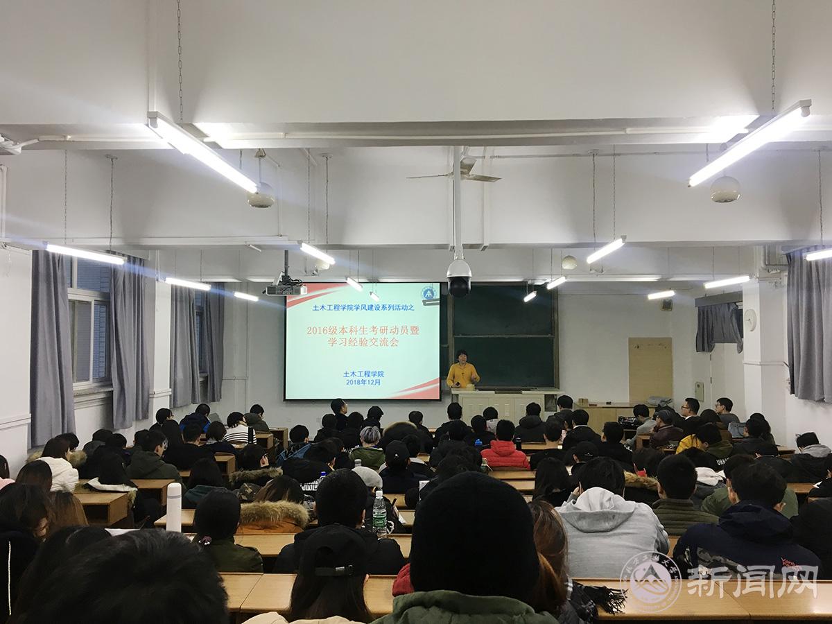 为了进一步加强学院学风建设,指导学生做好学业及职业规划,土木工程学院于12月20日,在励学楼424教室,召开2016级本科生学风建设暨考研动员会。院系负责人、辅导员、班导师以及2016级全体学生参加了大会。会议由学院党委副书记张少波主持。