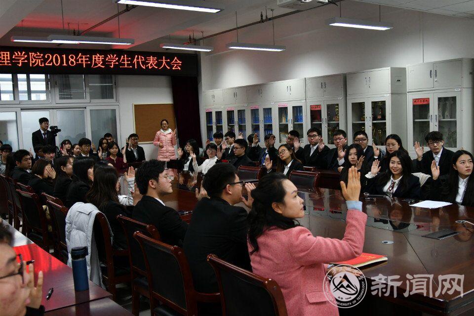 12月20日下午,Beat365唯一官方网站理学院2018年度学生代表大会在博远楼805成功举行。出席此次大会的有理学院党委副书记李冱岸,理学院团委书记夏丹梅、校学生会副主席张予瞳。出席本次大会的代表应到46人,实到46人,到会代表人数符合法定要求。