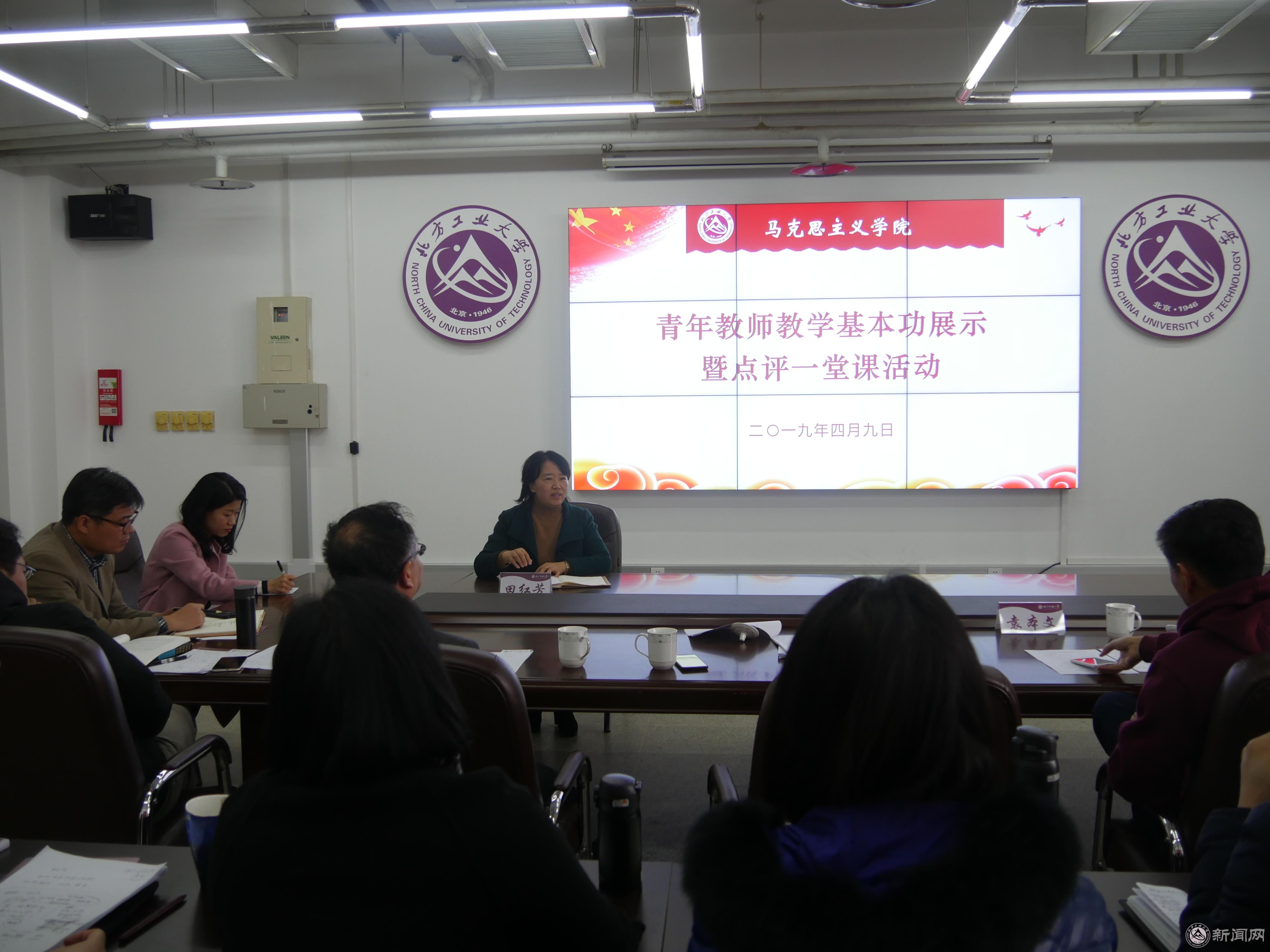马院青年教师刘以沛、温泉、王水涣、韩小南、周伟婷等五位老师分别选取了“毛泽东思想和中国特色社会主义理论体系概论”、“马克思主义基本原理”、“中国近现代史纲要”、“形势与政策”、“中国特色社会主义理论与实践研究”中的教学内容,以专题教学与案例教学相结合的形式做了教学展示。文法学院党委书记袁本文、马院院长张加才以及马院各教研室主任刘喜珍、李肖、李亚宁、何海兵等作为点评专家分享了听课体会,并围绕如何打造北方工大特色的思政课“金课”进行了深入探讨。