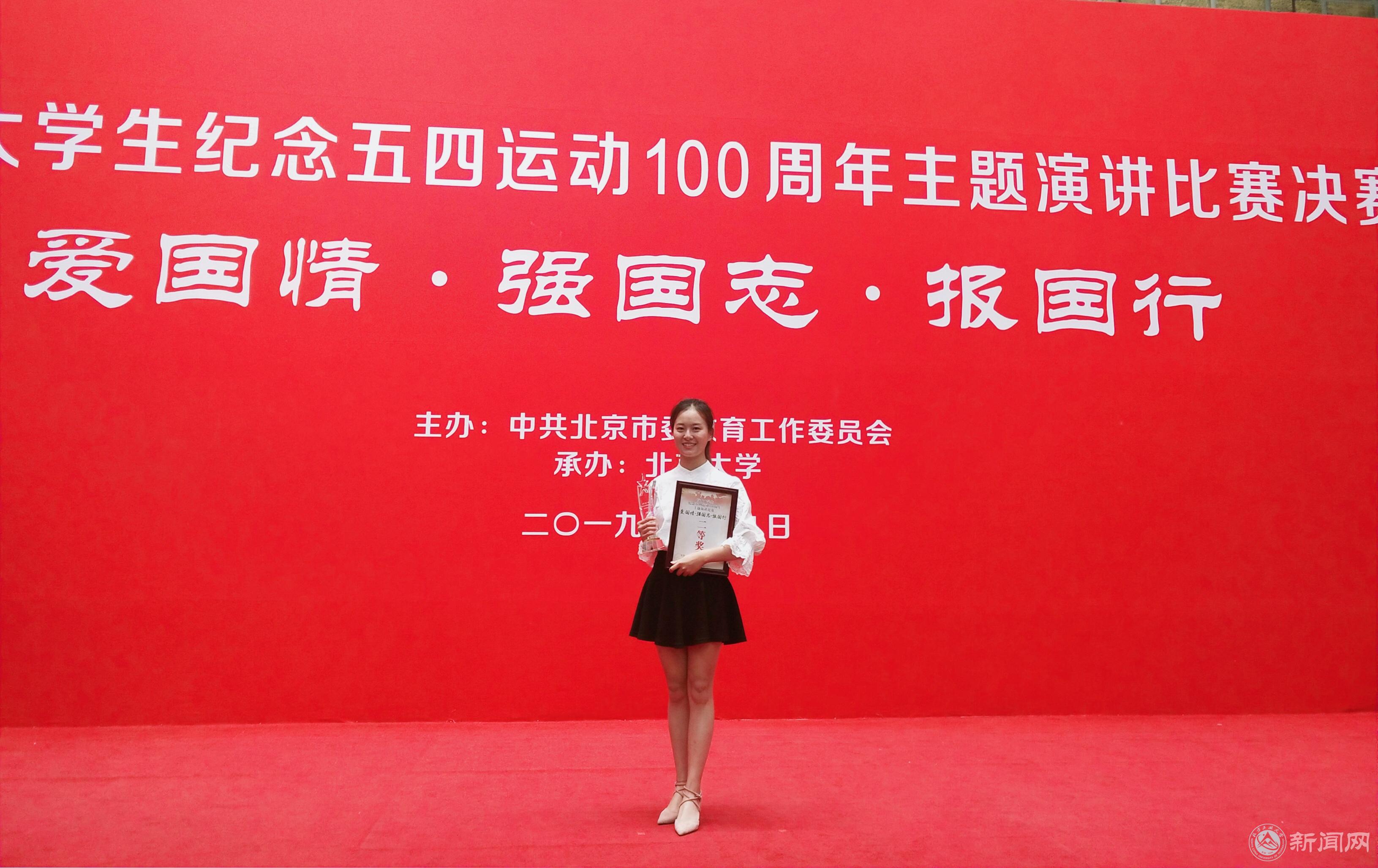 5月9日, “爱国情 强国志 报国行”首都大学生纪念五四运动100周年主题演讲比赛在北京大学英杰交流中心举行,代表Beat365参赛的计类18-7班江泠睿同学以95.3分的成绩荣获二等奖。