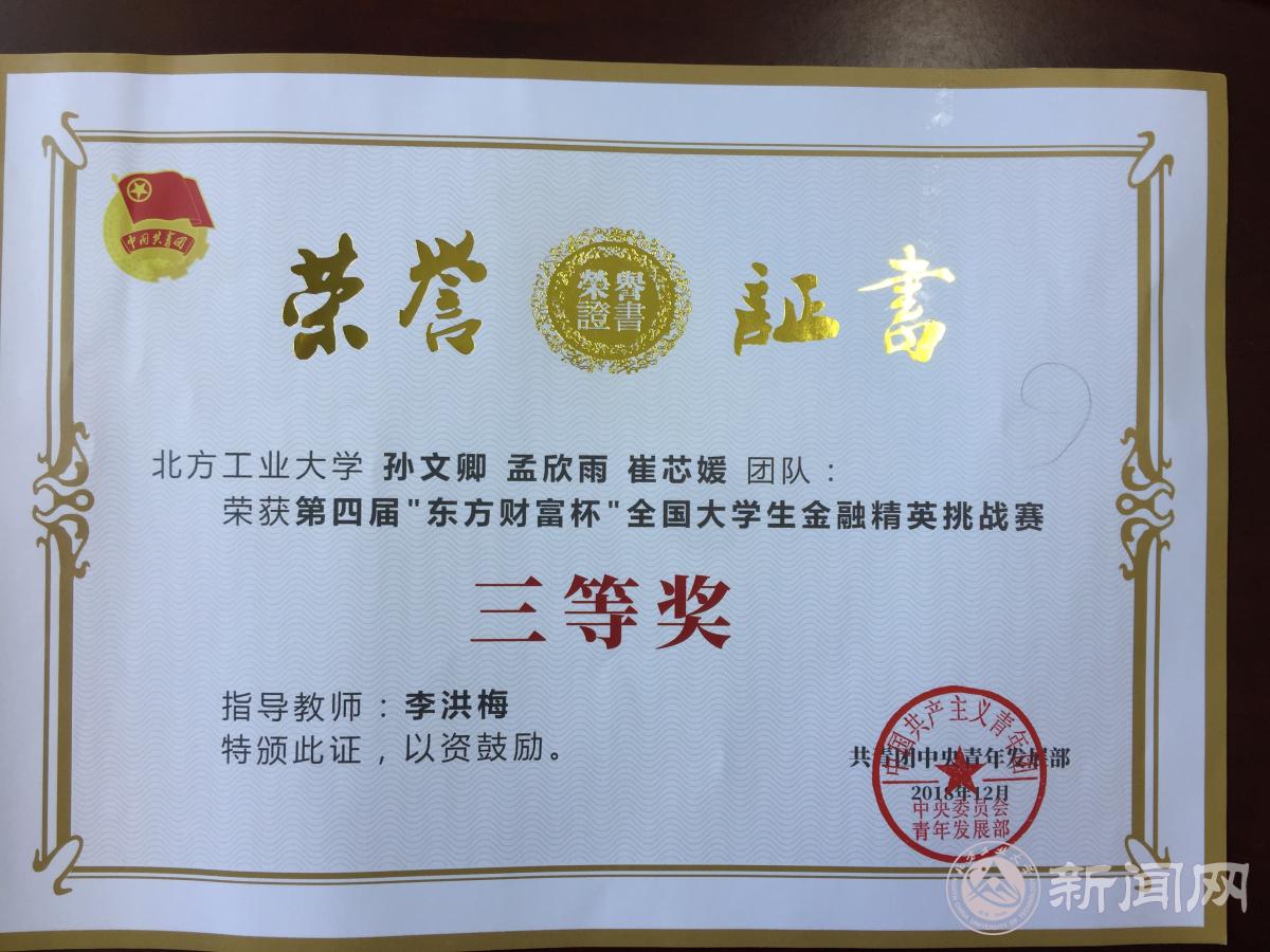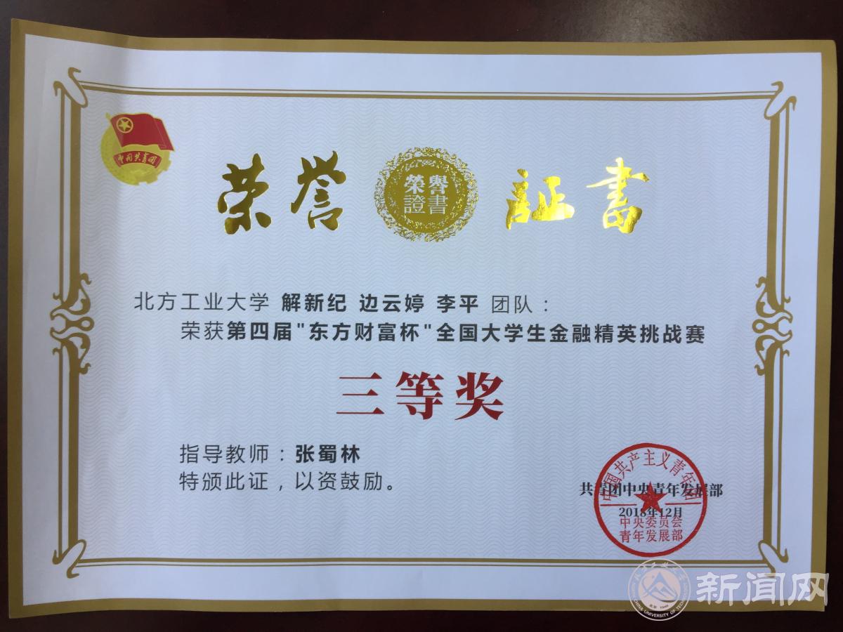 由共青团中央青年发展部主办,东方财富信息股份有限公司、全国学校共青团研究中心承办的第四届“东方财富杯”全国大学生金融精英挑战赛圆满结束。Beat365经管学院经济系张蜀林老师、李洪梅老师作为指导教师,组织2016级经济与金融专业学生全员参加了本届大赛,最终有5支团队、共15名学生,分别获取本届大赛的“团体三等奖“。
