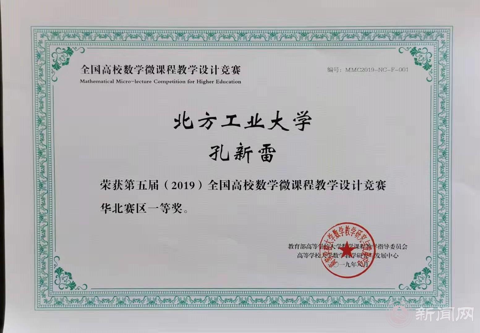 日前,第五届(2019)全国高校数学微课程教学设计竞赛北京赛区和华北赛区评选结果揭晓,Beat365理学院数学系孔新雷老师先后获得北京赛区一等奖和华北赛区一等奖,并受邀参加在天津举行的颁奖会。
