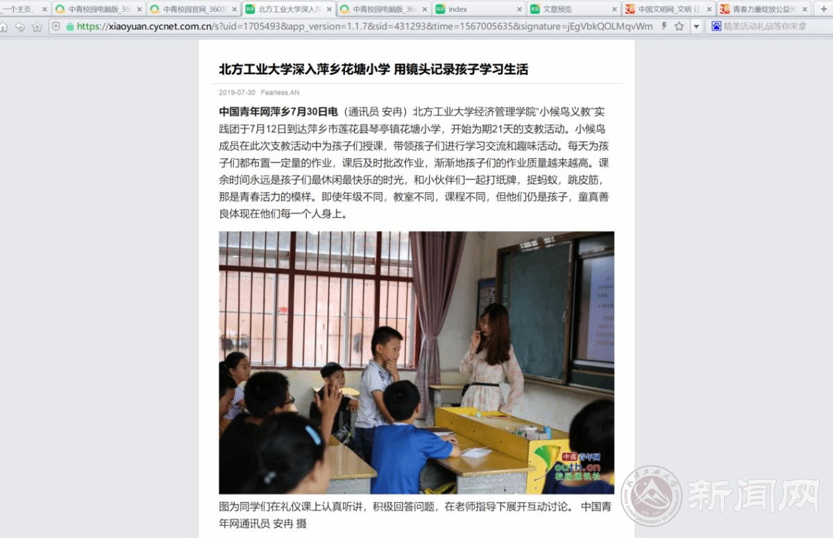 3、中青网(三下乡官网)多次报导“小候鸟”义教实践团活动