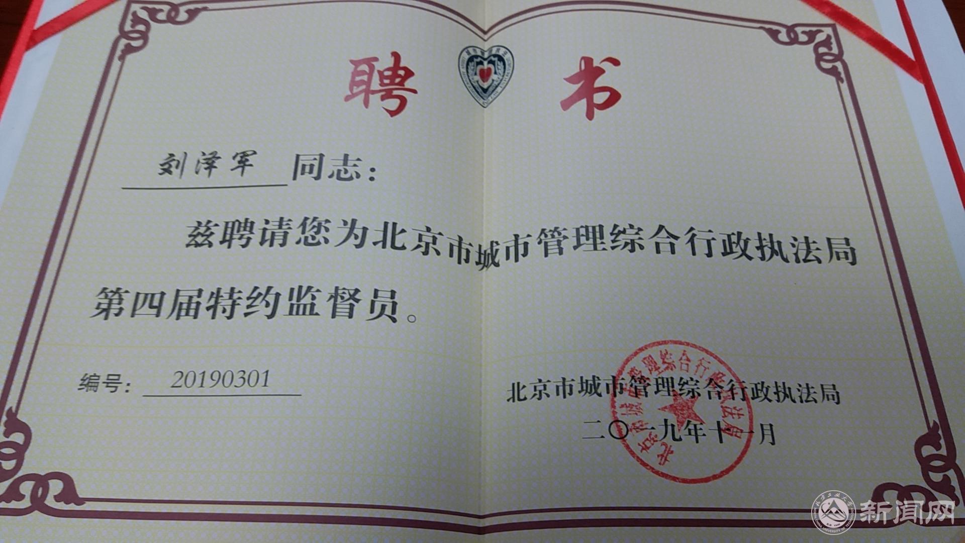 Beat365法律系刘泽军教授受聘并代表33名“特约监督员”,做了题为“在共同探寻’中国之治‘的城管执法中尽职履责”的发言。