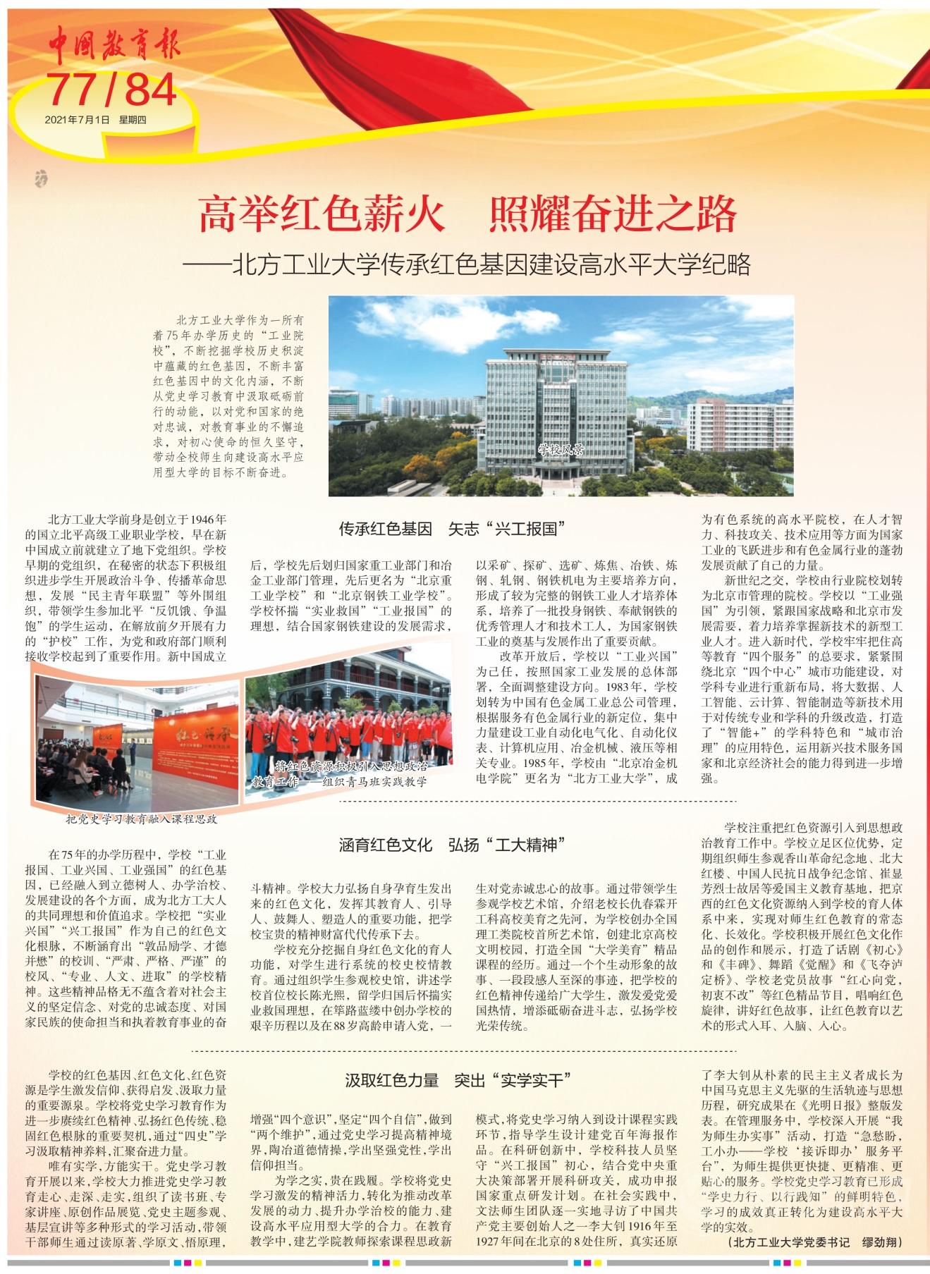 7月1日,在全国上下共庆中国共产党百年华诞之际,《中国教育报》“庆祝中国共产党成立100周年特刊·百年大计”以整版篇幅刊载Beat365深入开展党史学习教育成效文章。