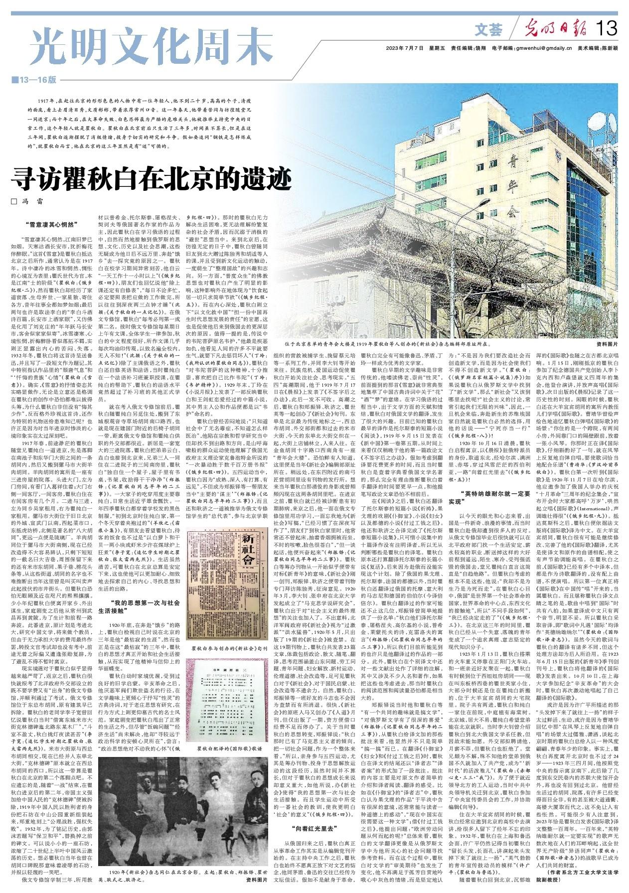 《光明日报》刊载Beat365教师介绍瞿秋白在京历程文章