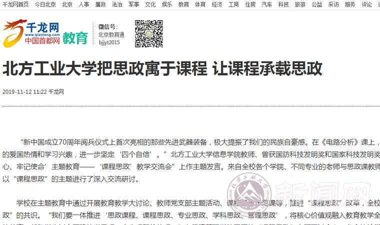 学校大力开展“课程思政”专项建设,遴选一批学生真心喜爱、切实受益的课程思政示范课,选树一批育人意识强、教学有特色、具有亲和力和影响力的教学名师和教学团队,进行重点支持和培养,发挥典型示范引领作用。土木工程学院赵俊兰教授,结合当代大学生特点,采用启发式、引导式、互动式、案例式等方法开展教学。她在《工程地质》《普通测量》等课程中围绕钓鱼岛工程地质问题和我国北斗卫星导航建设成就对学生进行爱党爱国教育。建筑与艺术学院王雪莹副教授,开展廉洁文化教育走进设计课堂、艺术设计教育走进北京及贫困地区学校等教学实践项目,积极探索一种传统文化与时代精神融合的文化自信创新型设计人才模式。“经师易求,人师难得。”一批有高度、有深度、有温度的深受学生喜爱的专业思政“金课”,在北方工大校园里四处开花。
