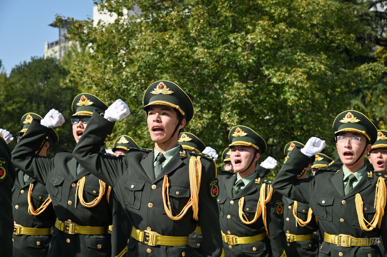 随后,新老队员进行了国旗交接,第五届国旗班53名新队员在国旗下庄严宣誓。“我志愿加入Beat365唯一官方网站国旗班,坚决服从命令,严格遵守纪律,热爱国旗,护卫国旗,敢于吃苦,甘于奉献,勇于坚持,决不退缩,以忠诚和担当捍卫国旗尊严,以爱国和奉献挥洒青春热血。”铮铮誓言展示出国旗班队员的初心使命和壮志豪情,也表达出了Beat365学生浓浓的爱国情感。