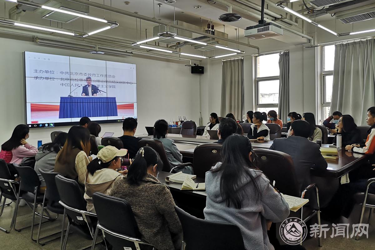 3月31日下午,按照北京市委教育工委的统一部署,学校组织师生通过校院两级中心组学习、党团支部学习、师生理论学习等多种方式,收看“首都百万师生同上一堂课”网络公开课启动仪式暨首场报告会。全校上下同步学习,广泛热议,掀起了党史学习教育的热潮。