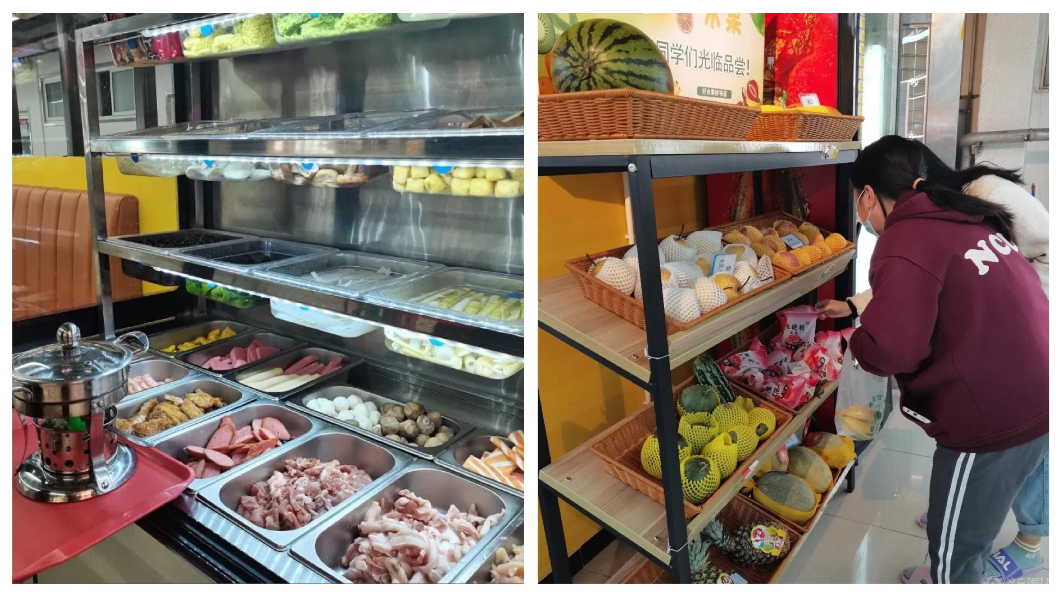 为了让封闭期间的师生员工吃得好,吃得满意,食堂增加了小炒、盖饭、关东煮、炸串、小火锅等特色菜品。金鼎学生食堂还增加麻辣香锅、麻辣烫、干锅和水果零售服务。为减少家属外出购物带来的交叉感染风险,饮食服务中心联系具备资质的供货商提供优质货源,定期设立“便民售菜点”,老师及家属踊跃购买。