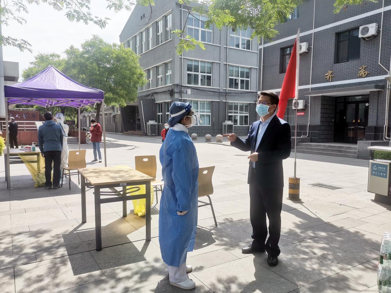 保健科的马伟医生,为教职工志愿者和食堂员工开展防护技能、核酸自检试剂盒培训122人次,指导志愿者如何正确防护、如何进行核酸采样、如何开展核酸自测。马伟大夫自豪地说,学校参加核酸检测的每一名志愿者、食堂的每一名员工都是他的“优秀毕业生”。