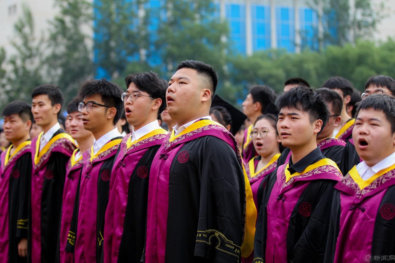 西操场上绿草如茵,人头攒动,大红的毕业典礼背景板传递出喜庆的气氛。操场上“此一程山高路远,下一程星河灿烂”“青年当万里,不负好年华”等毕业寄语,是母校的嘱托,更是老师临别殷殷的期望。毕业生代表走上舞台,激情唱响《起风了》《你曾是少年》《离别开出花》《你要跳舞吗》《去明天》等歌曲,唱出了青春的色彩,唱响矢志报国、争当样板的壮志豪情。时光相册带领师生穿越时空,回顾四年大学生活点点滴滴,勾起大家淡淡的离愁别绪。