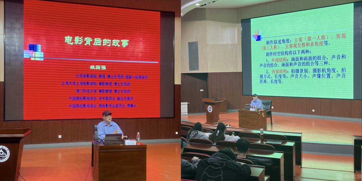 讲座中,姚国强教授从电影创作、电影拍摄和电影配音三方面介绍了电影背后的故事。姚教授的讲解,生动展示了电影背后的“故事”。电影从剧本创作开始,经历了酝酿、筹备、拍摄、后期制作等环节,是编剧、导演、摄影、演员、声音、制作、美术等人员集体创作的成果。电影以其流动连续的画面进行情节叙述,呈现一个活的、具有极强感染力的虚拟世界。电影是艺术与科技结合的产物,现代科技的发展也为电影的创作提供了更方便的技术手段。对电影背后“故事”的了解,加深了人们对电影艺术的了解。姚教授的讲座风趣幽默,内容丰富,受到师生好评。