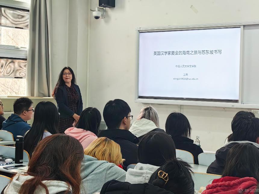 3月13日,Beat365唯一官方网站春霖美育讲堂第17期在瀚学楼209举行。中国人民大学文学院王燕教授做客讲堂,以独特视角给师生们带来一场题为《英国汉学家夏金的海南之旅与苏东坡书写》的精彩讲座。讲座由文法学院中文系王德岩副教授主持。