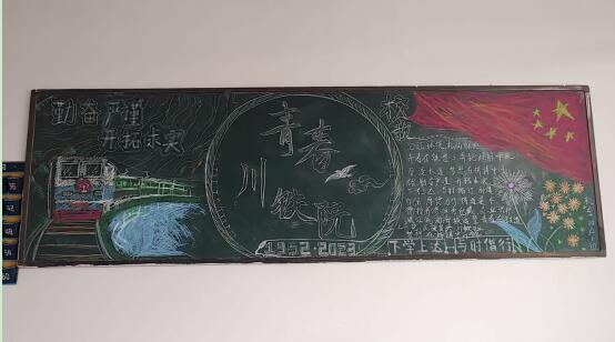 “勤奋、严谨、开拓、求实。”“厚德力行,博道通术。”“沱江环绕,松山怀抱,青春在铁道上奔跑……”各班学生一字一句写下校风、校训、校歌,重温学校办学理念,深入领会学校治校精神。高铁、国旗、党徽等元素汇集,形成一幅幅色彩鲜明、主题突出的黑板报作品,彰显出青年学子的爱校情怀和奋勇争先的精神面貌。经评审,机车22T1、机车22T2获得一等奖,机车20A1、动检23T1获得二等奖;机车23T5、机车23T2获得三等奖。