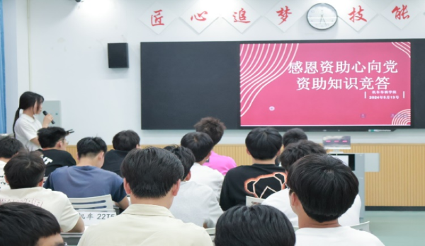 为进一步加强国家资助政策宣传力度,强化资助工作的育人功能,提升学生思想道德素养,机车车辆学院于5月13日在1209教室开展“感恩资助心向党”大学生资助知识竞答比赛。本次比赛以班级为单位,共吸引18支参赛队伍。