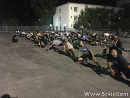 暮色四合,在结束一天的学习之后,在西昌机务段实习的同学们在机务段老师的带领下,进行体操运动,一丝不苟。