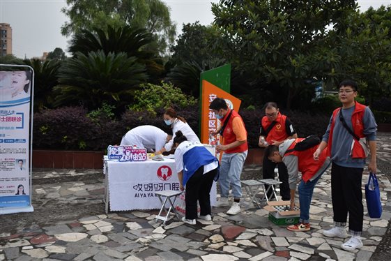 志愿者们按照要求分为两组,第一组8人负责居民的活动签到,号码牌发放以及现场秩序的维持工作;第二组7人负责健步走线路引导工作。活动于8时30分开始,当地居民在志愿者的引导下从两路口党群服务中心出发,最终抵达太平洋电影院,志愿活动于12时正式结束。