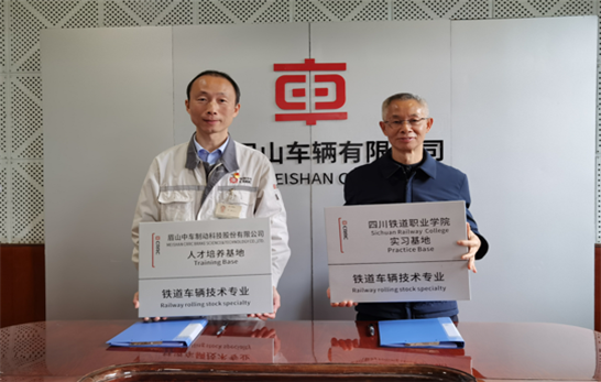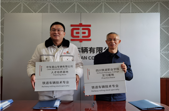机车车辆学院龙明贵院长就实习基地建设、科研、培训等校企合作具体事项,颜静书记就党建育人与文化建设合作分别做了交流发言。 最后,周立校长代表学校分别与中车眉山车辆有限公司、眉山中车制动科技股份有限公司签订了校企合作协议并举行了授牌仪式。  中车眉山车辆有限公司副总经理王之成与周立校长签署协议  眉山中车制动科技股份有限公司党委副书记周毅与周立校长签署协议 此次签约仪式对学校和企业今后发展意义重大, 当前在新时代、新机遇、新合作的重大背景下,围绕“交通强国”战略,校企双方在党建引领、人才培养和队伍建设上积极合作,做实做细工作,推进合作纵深发展,实现校企双方的互利共赢。  校企双方授牌仪式现场