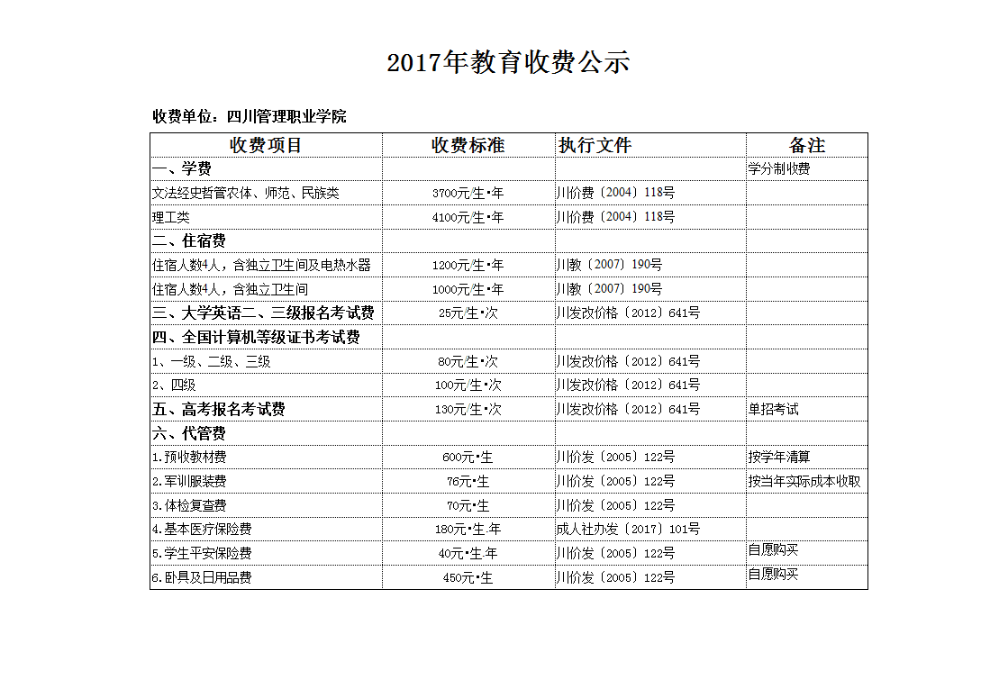 2017年教育收费公示