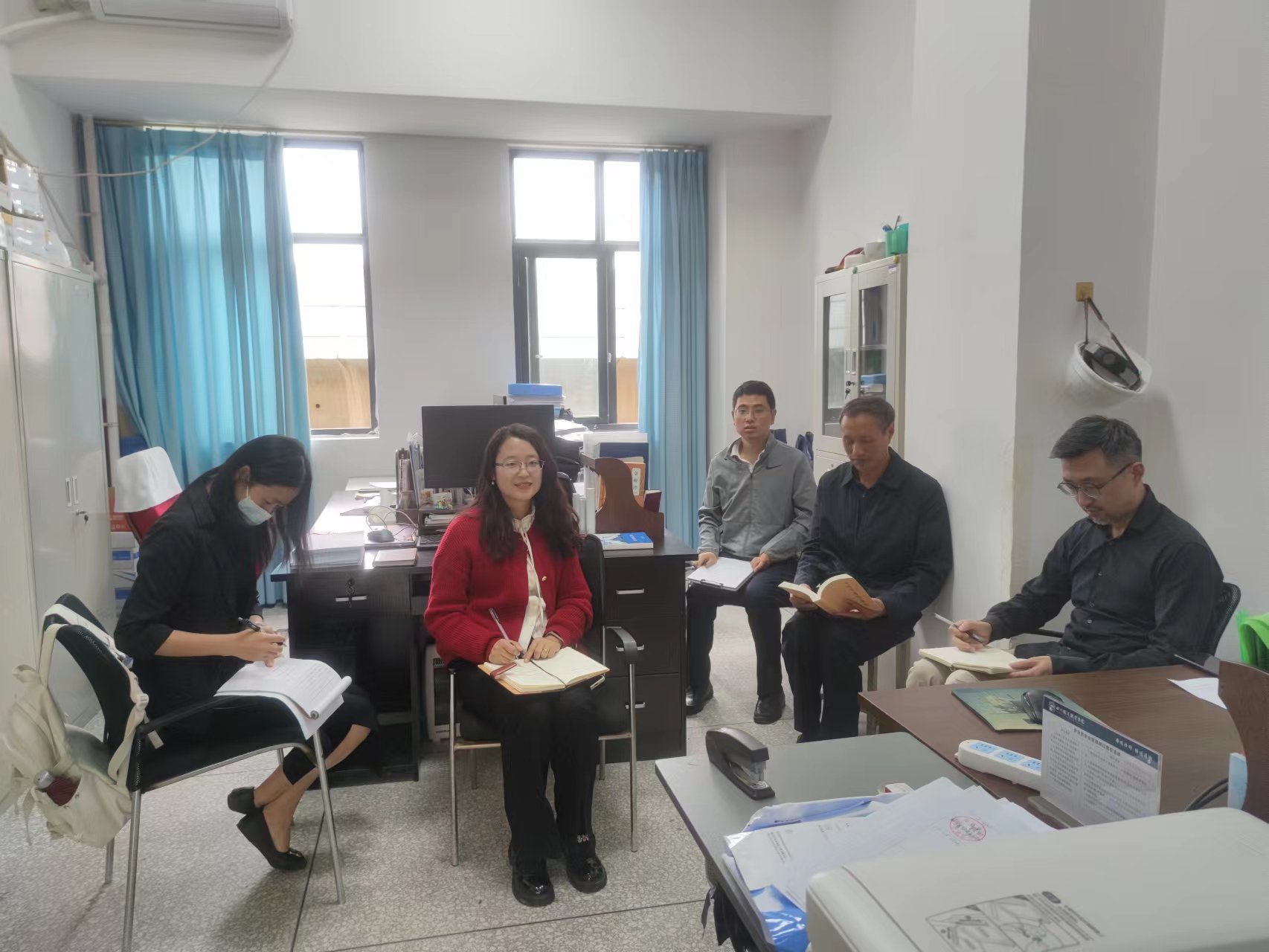 为深入学习贯彻党的二十大精神和习近平新时代中国特色社会主义思想,进一步增强广大教职工立德树人的使命感,筑牢思想根基。5月22日下午,基建处按照学校要求组织全体教职工在基建处办公室集中开展政治学习,机关干部陆慧琴参与学习交流。会议由基建处处长马麟主持。