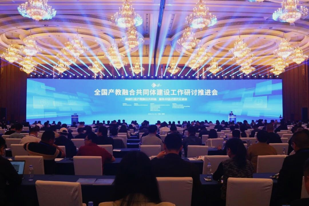 2023年5月9日,以“构建行业产教融合共同体 服务中国式现代化建设”为主题的全国产教融合共同体建设工作研讨推进会在蓉召开。会议旨在深入贯彻党的二十大精神和习近平总书记有关重要指示批示精神,落实中办、国办《关于深化现代职业教育体系建设改革的意见》,优化职业教育类型定位,立足新阶段,实施新战略,扎实推进行业产教融合共同体建设。教育部职业教育与成人教育司副司长林宇,中共四川省委教育工委委员、四川省教育厅副厅长石静等教育部、发改委、工信部、地方教育行政部门,各行业、企业、职业院校代表出席会议。beat365组织教务处处长一行同志参加会议。