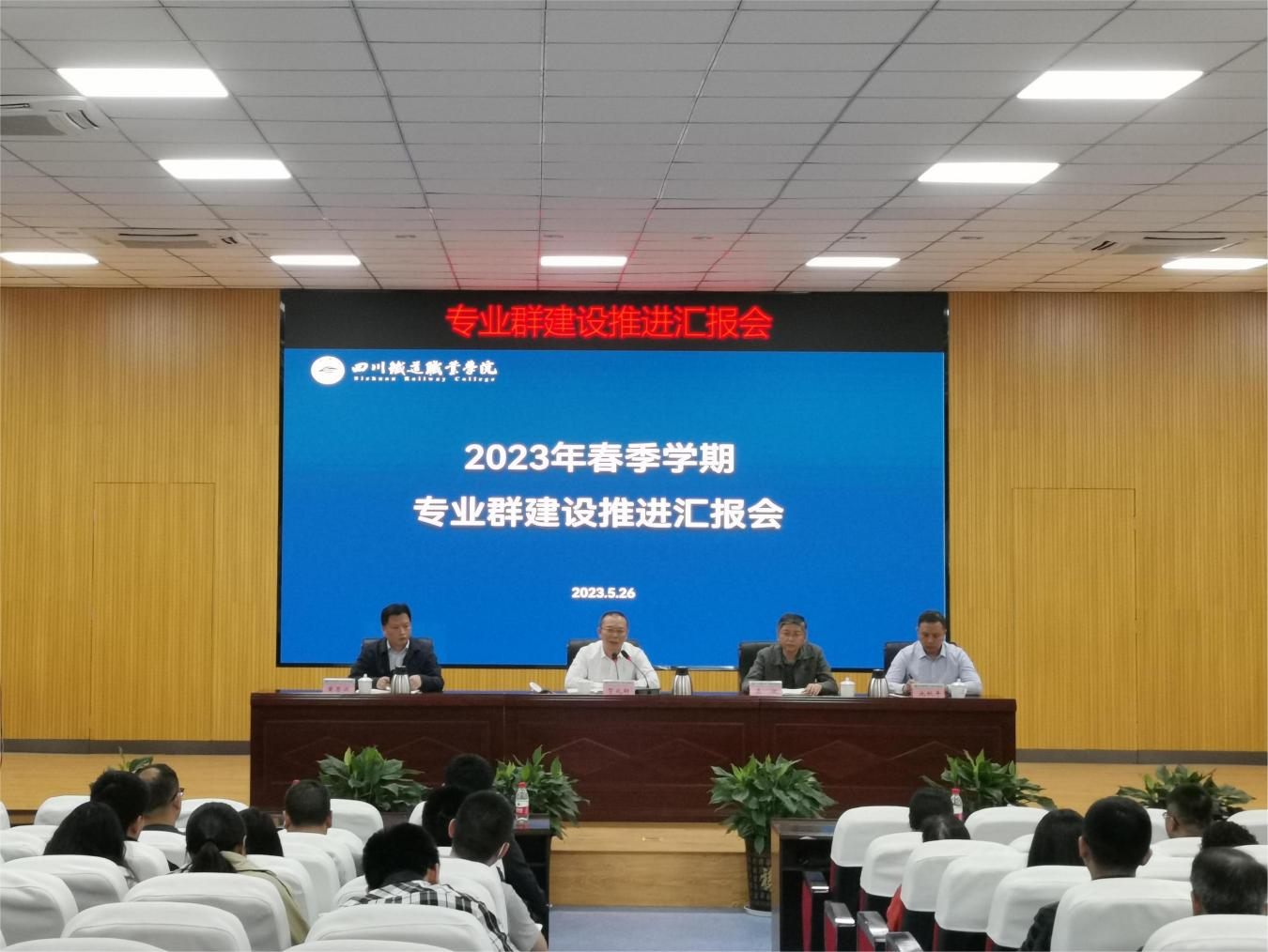 2023年5月26日,学校在学术报告厅组织召开2023年春季学期专业群建设推进汇报会,学校党委书记贺兆轩出席会议并讲话。纪委书记池秋平,副校长吴斌、黄恩兴,人事处、科研处、教务处负责人及相关工作科室负责人,二级学院书记、教学单位负责人、教研室主任及骨干教师参加会议。内江校区管委会相关领导和部分教师线上参会。副校长黄恩兴主持会议。