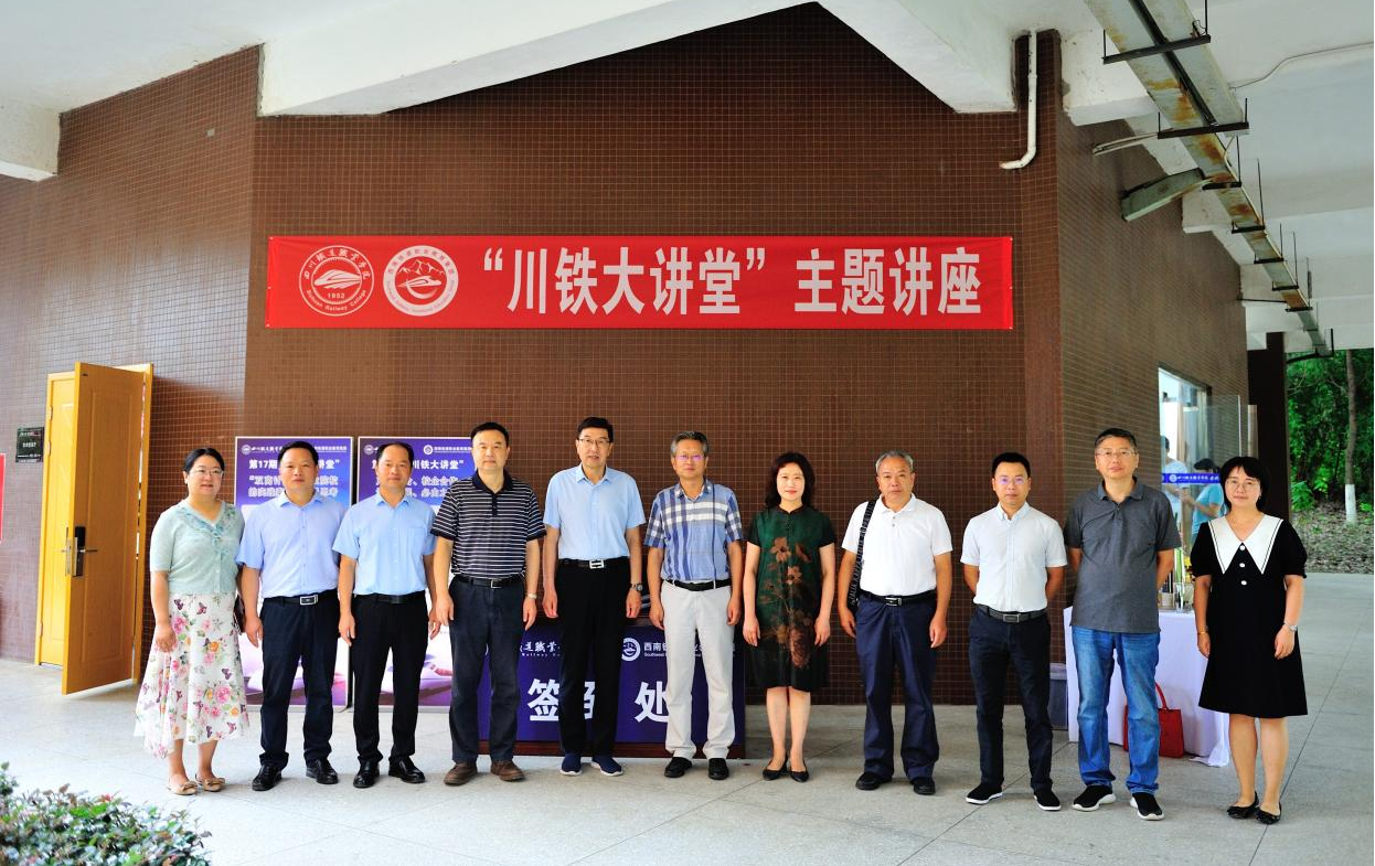 818日上午,“川铁大讲堂”第十八期主题讲座在安德校区学术报告厅举行。本期讲座学校有幸邀请到了四川省高等教育学会副会长、成都工业学院原副校长、四川省有突出贡献的优秀专家陈传伟教授担任本期主讲嘉宾。学校党委副书记、校长赖芳,党委副书记刘昊君、副校长吴斌、副校长黄恩兴和两校区师生代表200多人参加讲座。本次西南铁道职业教育集团部分成员单位应邀参加讲座,共话职业教育产教融合新任务,共谋校企合作新路径。本期讲座有幸邀请到全国高等职业学校校长联席会议主席、天津职业大学原校长董刚教授,四川建筑职业学院原党委书记李辉教授、四川信息职业技术学院原院长敬代和教授、四川高等职业教育研究中心秘书长杨小燕教授作为特邀嘉宾为现场干部师生和集团代表答疑解惑。副校长黄恩兴主持本期讲座。