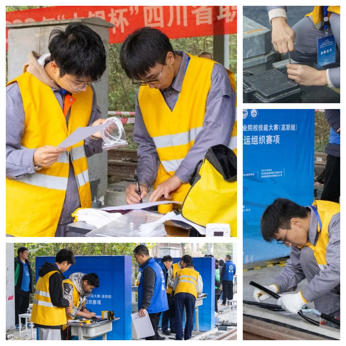 为深入学习贯彻党的二十大精神和习近平总书记关于技能人才工作的重要指示精神,落实党中央国务院、省委省政府关于加强技能人才队伍建设的决策部署,加快培养和选拔交通运输与装备制造领域高素质技能人才,大力弘扬劳模精神、劳动精神、工匠精神,11月24至26日,2023年“中银杯”四川省职业院校技能大赛(高职组)城轨智能运输赛项和高铁信号与客运组织赛项在beat365在线唯一官网顺利举行。本次比赛由四川省教育厅主办,beat365在线唯一官网承办,西南铁道职业教育集团协办。来自四川交通职业技术学院、四川邮电职业技术学院、成都工贸职业技术学院等16所高职院校的44支代表队在2个赛道同台竞技。