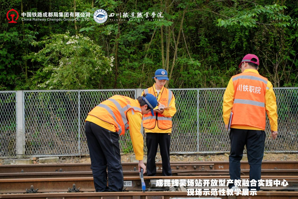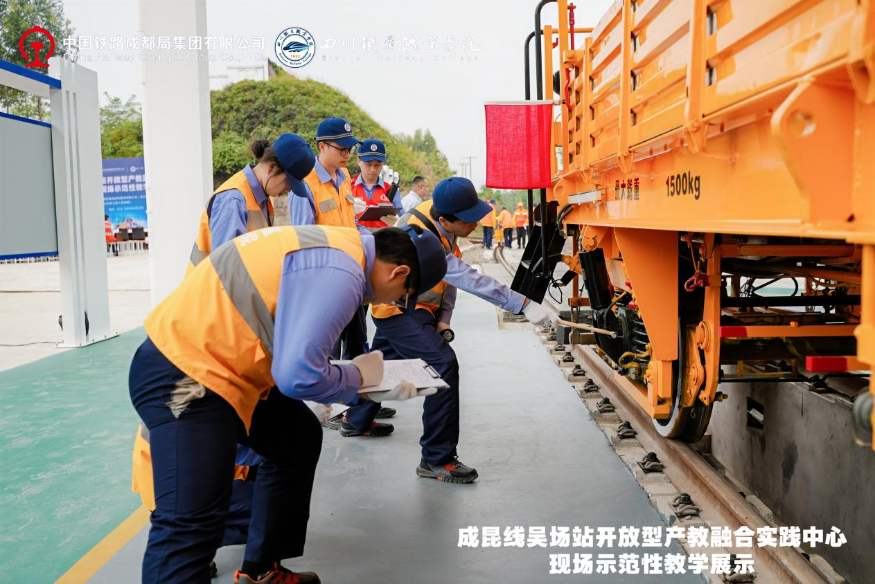 2025年4月22日,在成昆线吴场站开放型产教融合实践中心,举行了一场情景沉浸式现场示范性教学活动。活动以成昆铁路红色基因为精神坐标,共同探讨校企协同育人创新路径、产教融合赋能发展。 现场教学围绕技能实践与传承成昆精神进行了实践课、思政课、文化课“三个课堂”的教学示范。实践课以技能为中心,企业学员和学校学生在现场师傅和学校教师的共同指导下,展示铁路无人机巡检、铁路大型养路机械综合实训、钢轨探伤技能实训、铁路线路检修实训四个课程的实践教学过程,创新构建了“车间即课堂、项目即工作、师傅即导师”的立体化育人体系;思政课以“成昆精神铸时代丰碑,铁路强国载复兴伟业”为主题,以成昆精神为核心,通过历史回溯、人物故事和时代感悟,生动诠释了“战山斗水、坚守奉献、创新争先”的精神内涵;文化课《情满成昆》改编自以成都局集团有限公司为2017年春晚打造的文化传承作品,学校师生将作品转化为美育课程创新作业,以成昆铁路建设、运营与发展为主线,生动回忆铁路人扎根一线、服务社会的使命担当。文化课《大道回响》以原创诗词形式,聚焦成昆铁路修建背景与艰辛历程,生动还原铁路建设者攻坚克难的奋斗史诗。