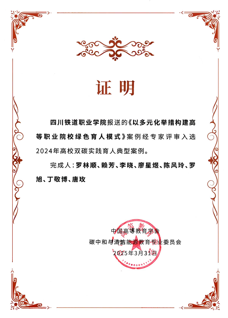 近日,学校绿色低碳与产业融合研究院申报的《以多元化举措构建高等职业院校绿色育人模式》成功入选2024年中国高等教育学会碳中和与清洁能源教育专业委员会评选的高校双碳实践育人典型案例。这一荣誉是对学校在双碳领域育人实践的高度认可。