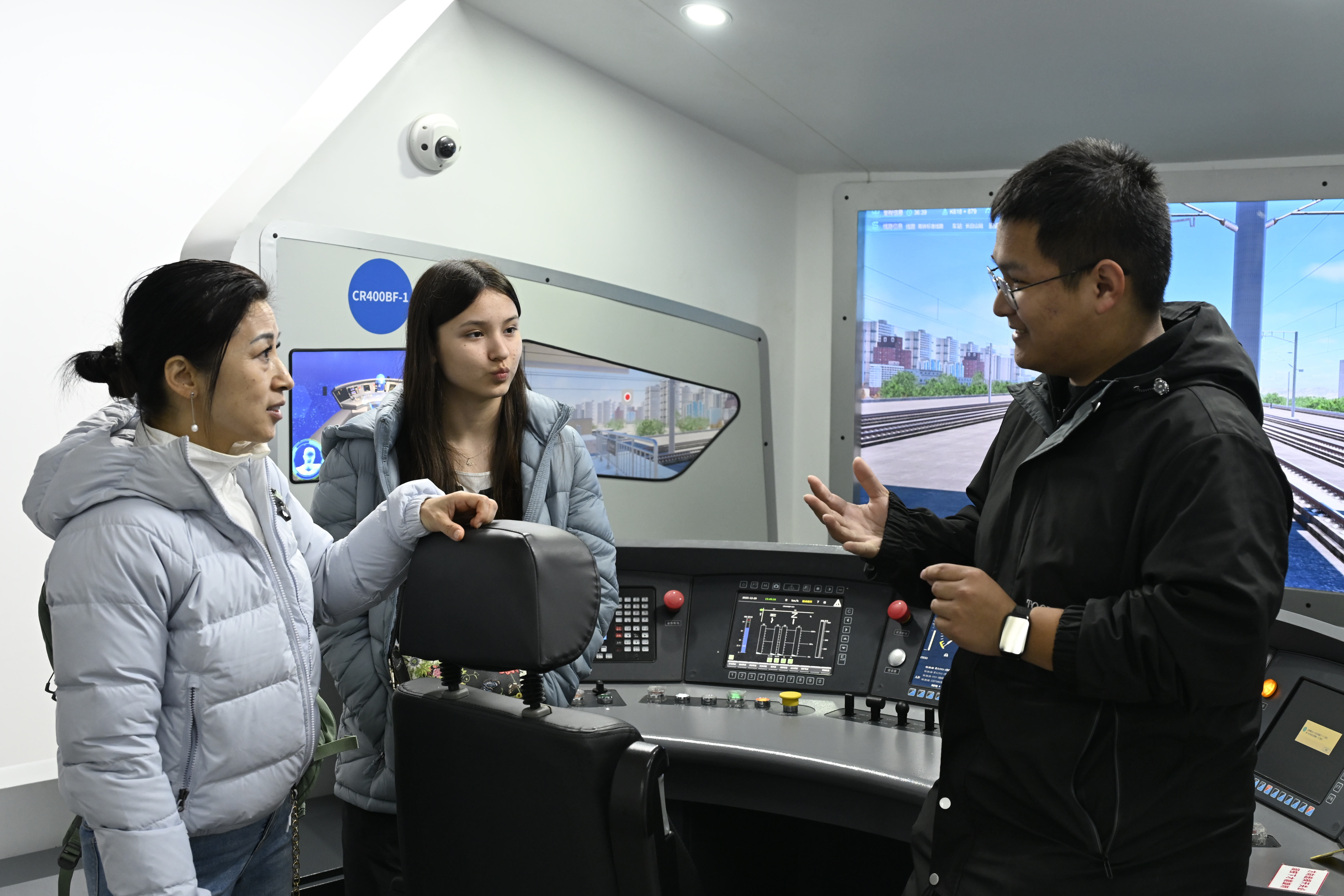 本次活动延续首批的安排,持续以高铁技术为窗口,以人文交流为纽带,厚植中美友好的未来根基。学校国际教学团队系统为学员讲解了中国高铁基础知识并带领学员参观了动车组驾驶人员资格考试模拟驾驶实作考点和复兴号高速动车模拟驾驶中心。在模拟驾驶环节,学员们亲自操控模拟驾驶,沉浸式体验“中国速度”背后的科技魅力与操作实践。学员们表现出对中国高铁的浓厚兴趣,并就相关问题与讲解教师进行交流讨论。