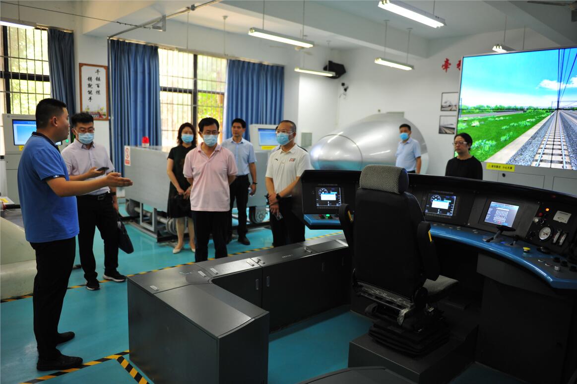 祝曦处长、张琪琳主任一行在学校党委书记贺兆轩、校长赖芳等陪同下,参观考察了学校铁道综合演练场、城轨交通综合实训中心、机车模拟操作系统等设施设备情况。